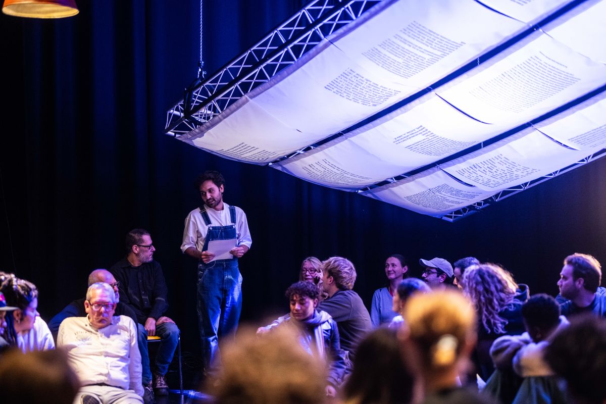 concept, text, direction, performance Fariborz Karimi | co-writer / remote performer Mona Ahmadi | dramaturgy Aria Baghestani | light design Patsy Lassbo | scenography, costumes Lou Seidel | composer Amirhossein Sadeghzadeh | atistic advisors Keerthi Basavarajaiah, Rajni Shah | supported by CultuurFonds | residency support BUDA Kortrijk, HELLERAU, wpZimmer | production and residency support Theater Rotterdam (‘Welcome to our guesthouse’)