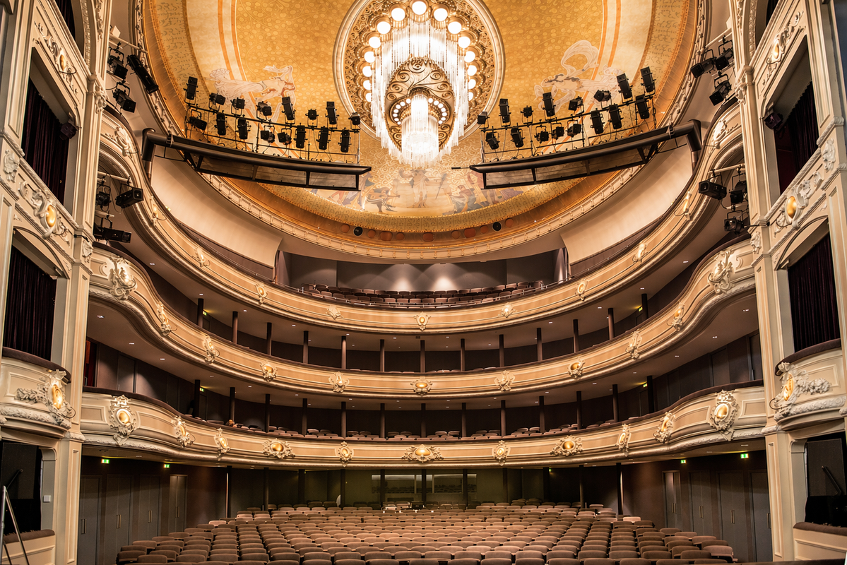 Inside, the details immediately stand out. The ceiling painting depicts the muses of comedy and tragedy, symbols of theatre itself. Above the stage you’ll find the letters SPQH (Senatus Populusque Haganus), meaning “for the senate and the people of The Hague” a clear statement that this theatre was meant for everyone. The boxes on either side of the stage, bearing the coats of arms of the royal family and the city, may not offer the best view of the performance, but they provide an excellent view of the audience, exactly as intended.
