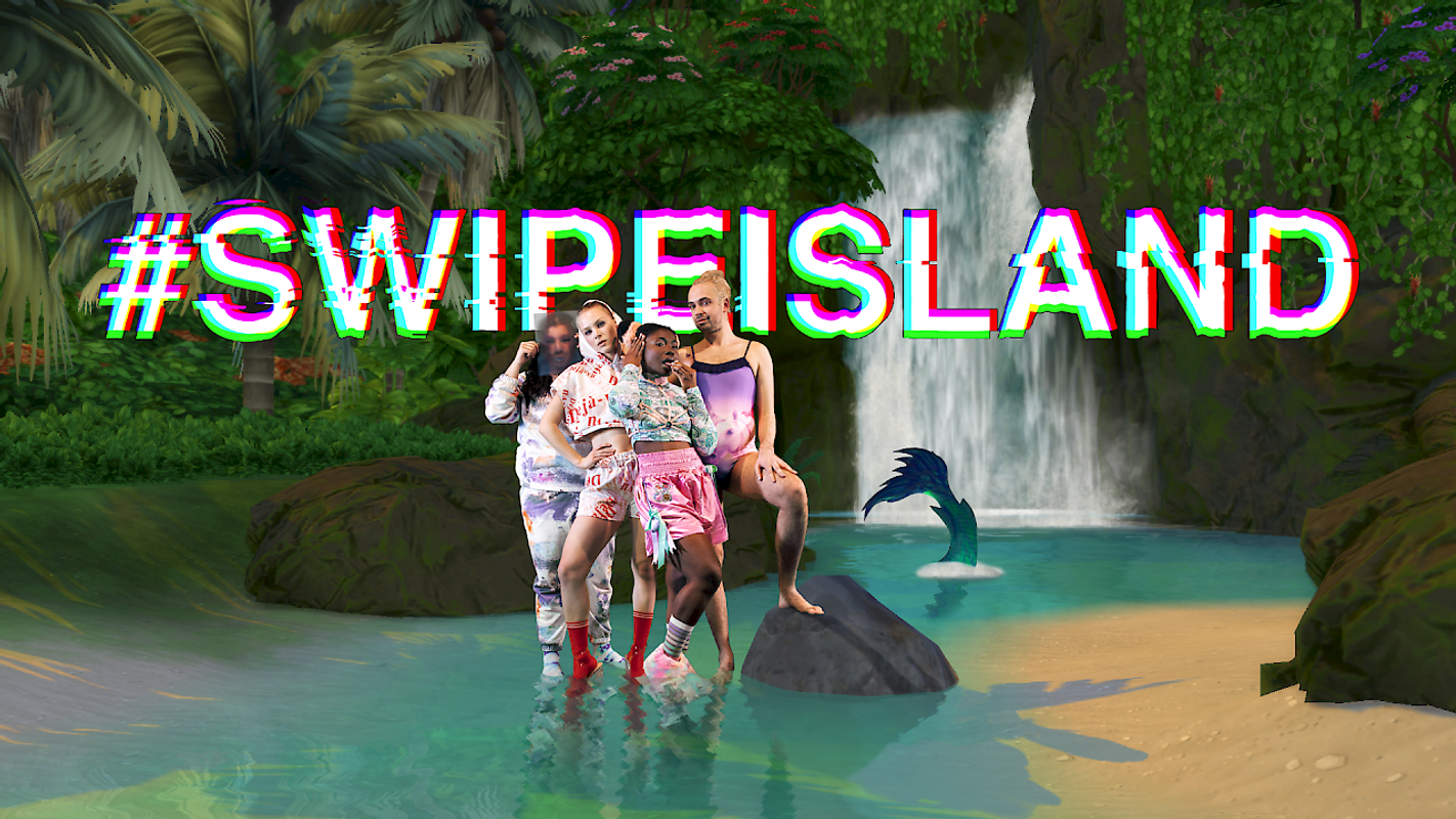 Regisseur Eva Line de Boer raakte gefascineerd door de eindeloze mogelijkheden die het wereldwijde web heeft toegevoegd aan de zoektocht naar de liefde in de vorm van dating apps, (catfish) webcam relaties en games die het leven simuleren. Ook is zij geboeid door televisieprogramma’s als Temptation Island en Ex on the Beach waar ongeremde liefde als vanzelfsprekend openbaar geconsumeerd wordt. Voor SWIPE ISLAND creëert ze samen met haar artistiek team een eigen digitaal universum dat overloopt van al deze fascinaties. In het grensgebied tussen on- en offline gaan verschillende sprookjesachtige personages op zoek naar de ultieme vorm van liefde. Via livestream ben je als kijker getuige. Wie weet wat Cupido voor jou in petto heeft…