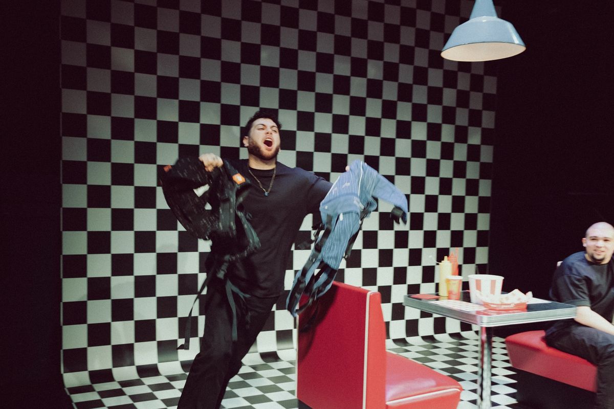 7sheb 3lik: rekenen op jou is een voorstelling over het doorbreken van de ketenen van trauma en hoe waardevol het is om zo'n proces samen aan te gaan met je broeder. Het liefst tijdens het eten. Want: "Als de wereld instort, is er altijd nog kip".